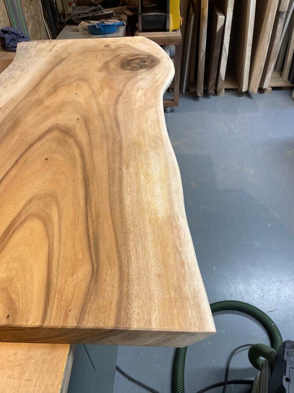 Deze boomstam plank is uit 1 stuk Suar hardhout is fijngeschuurd en spiegelglad, je kunt er zelf nog alle kanten mee op. Indien gewenst zagen we het blad voor je op maat.