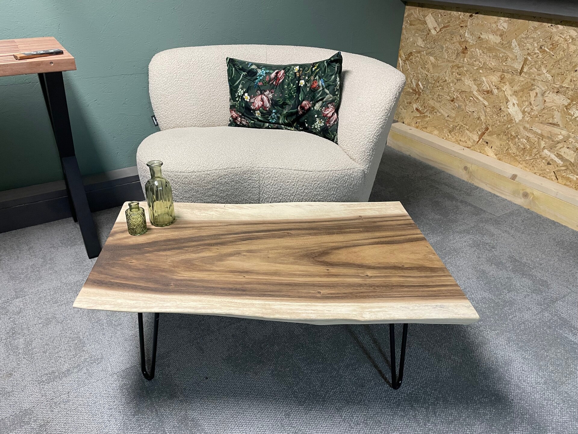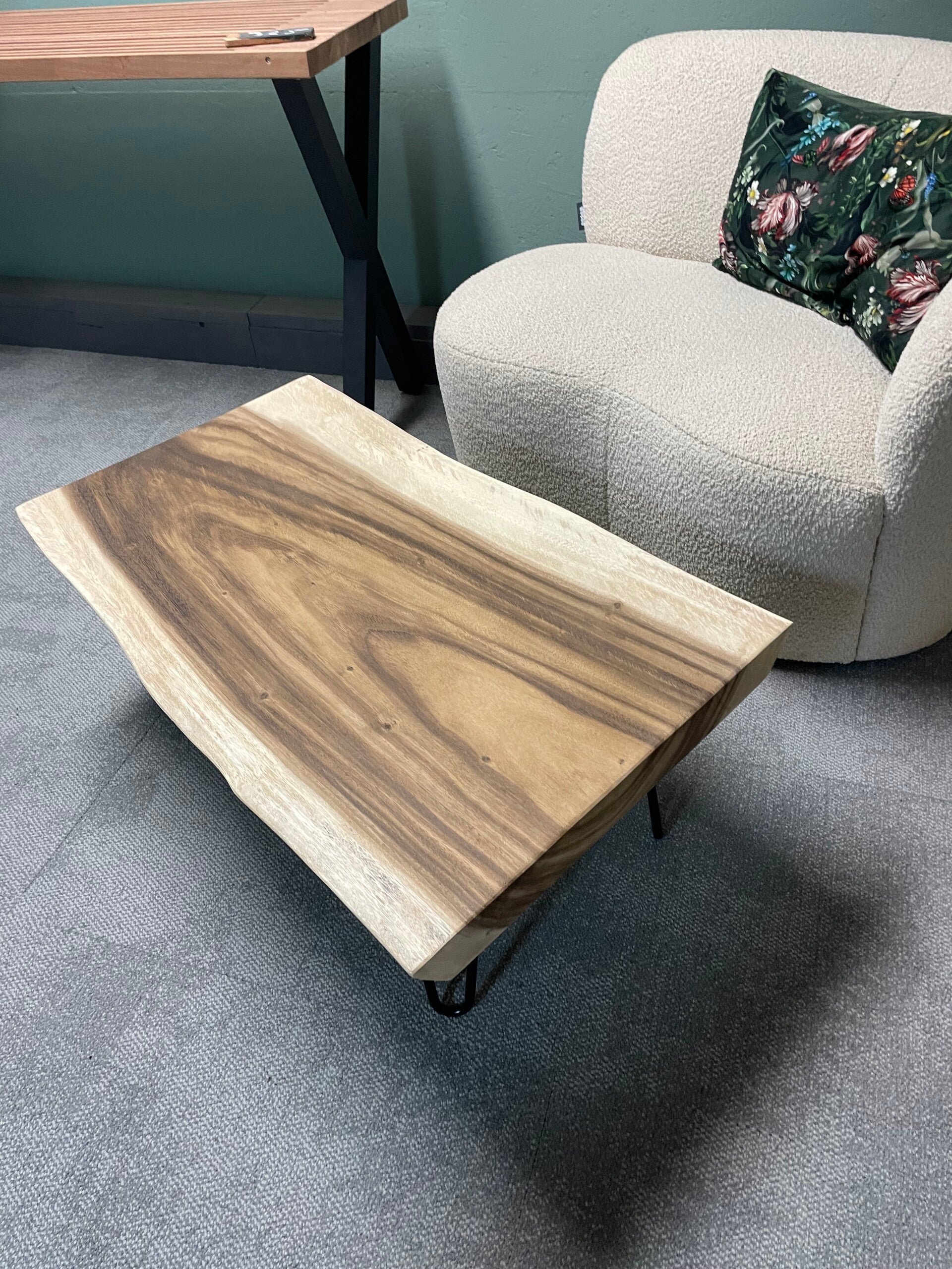 Deze salontafel is gemaakt van suar hout Hij is fijn geschuurd en spiegelglad.