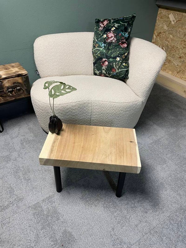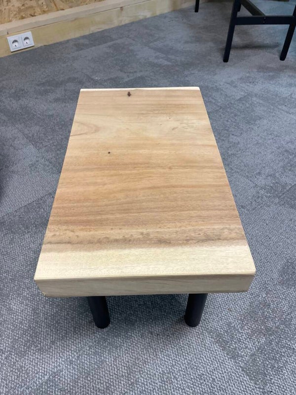 Leuke bijzettafel van Suar boomstam, fijngeschuurd dus glad. Blad is 6cm dik