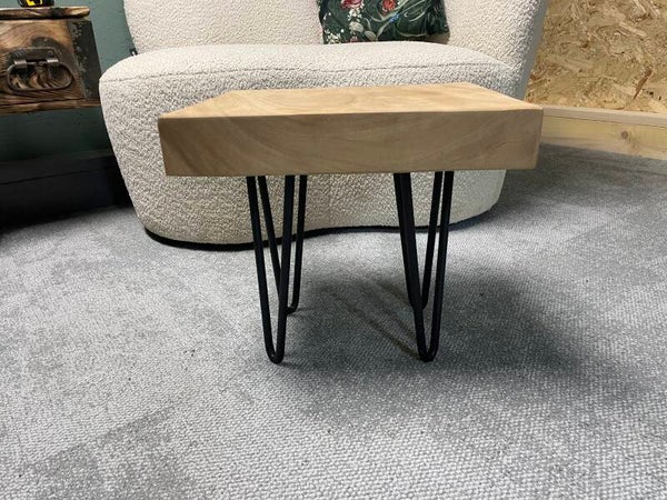 Leuke bijzettafel van Suar boomstam, fijngeschuurd dus glad. Blad is 6cm dik