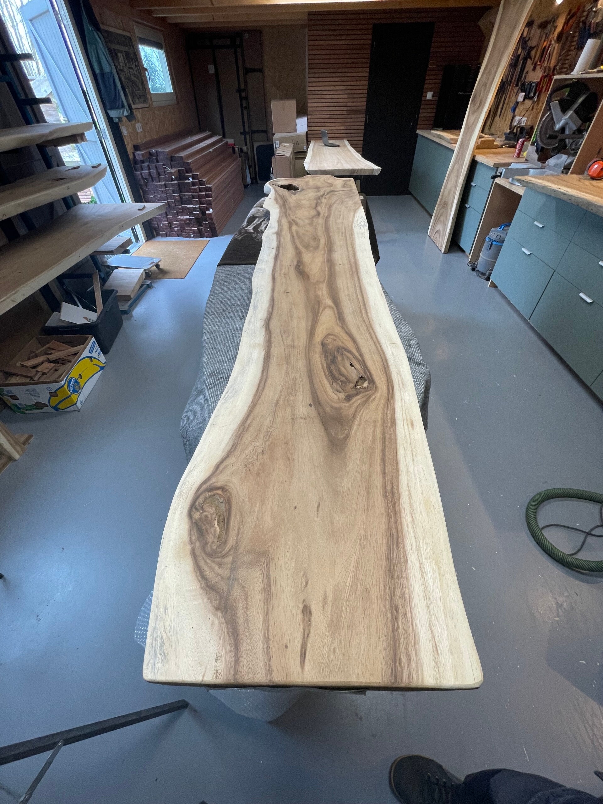 Deze boomstam plank is uit 1 stuk Suar hardhout is fijngeschuurd en spiegelglad, je kunt er zelf nog alle kanten mee op. Indien gewenst zagen we het blad voor je op maat.