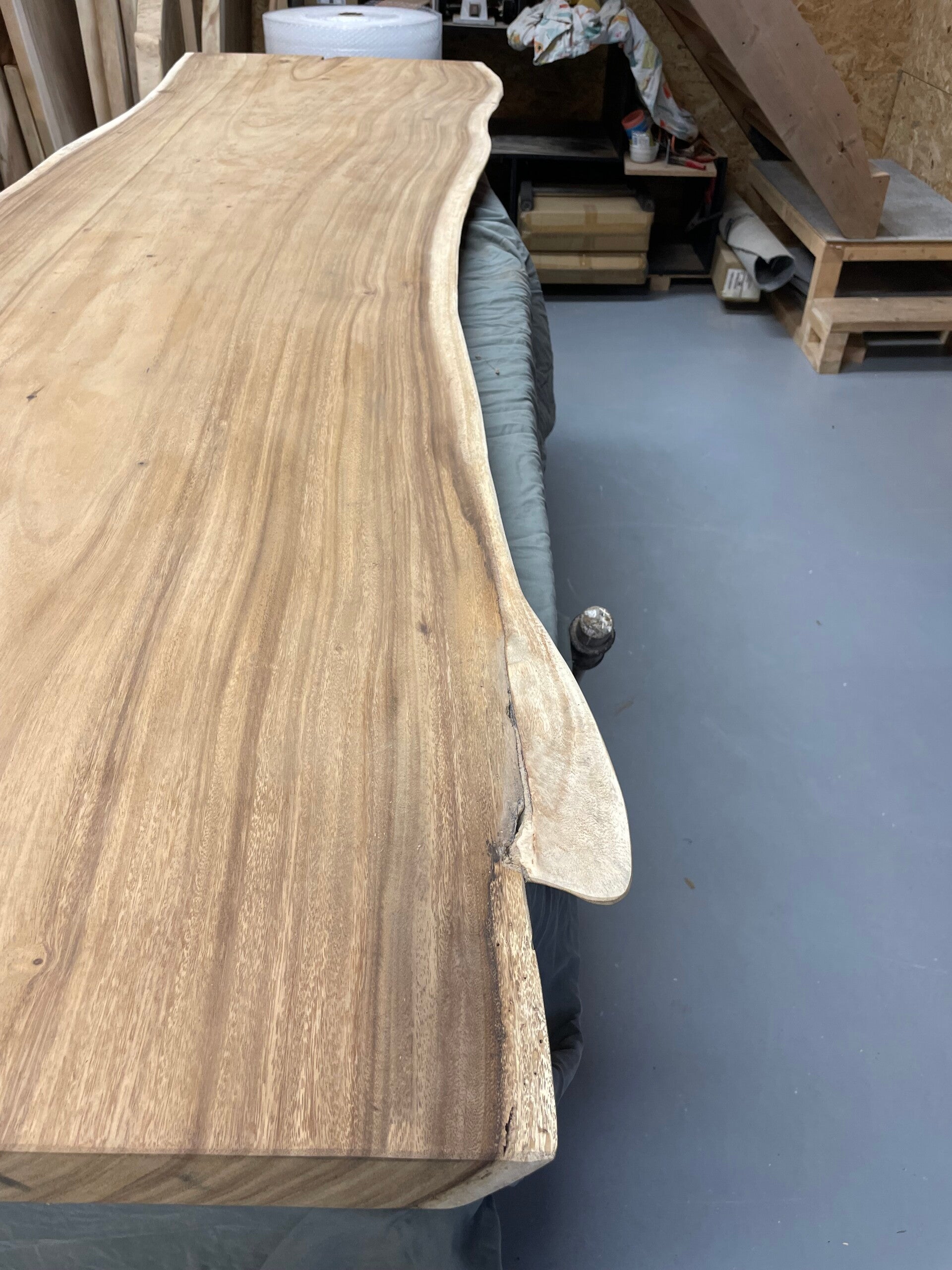 Deze boomstam plank is uit 1 stuk Suar hardhout is fijngeschuurd en spiegelglad, je kunt er zelf nog alle kanten mee op. Indien gewenst zagen we het blad voor je op maat.