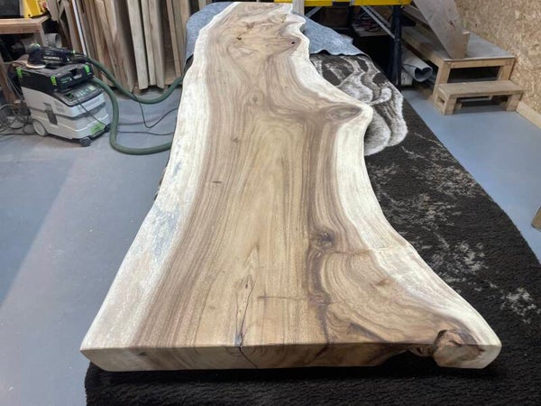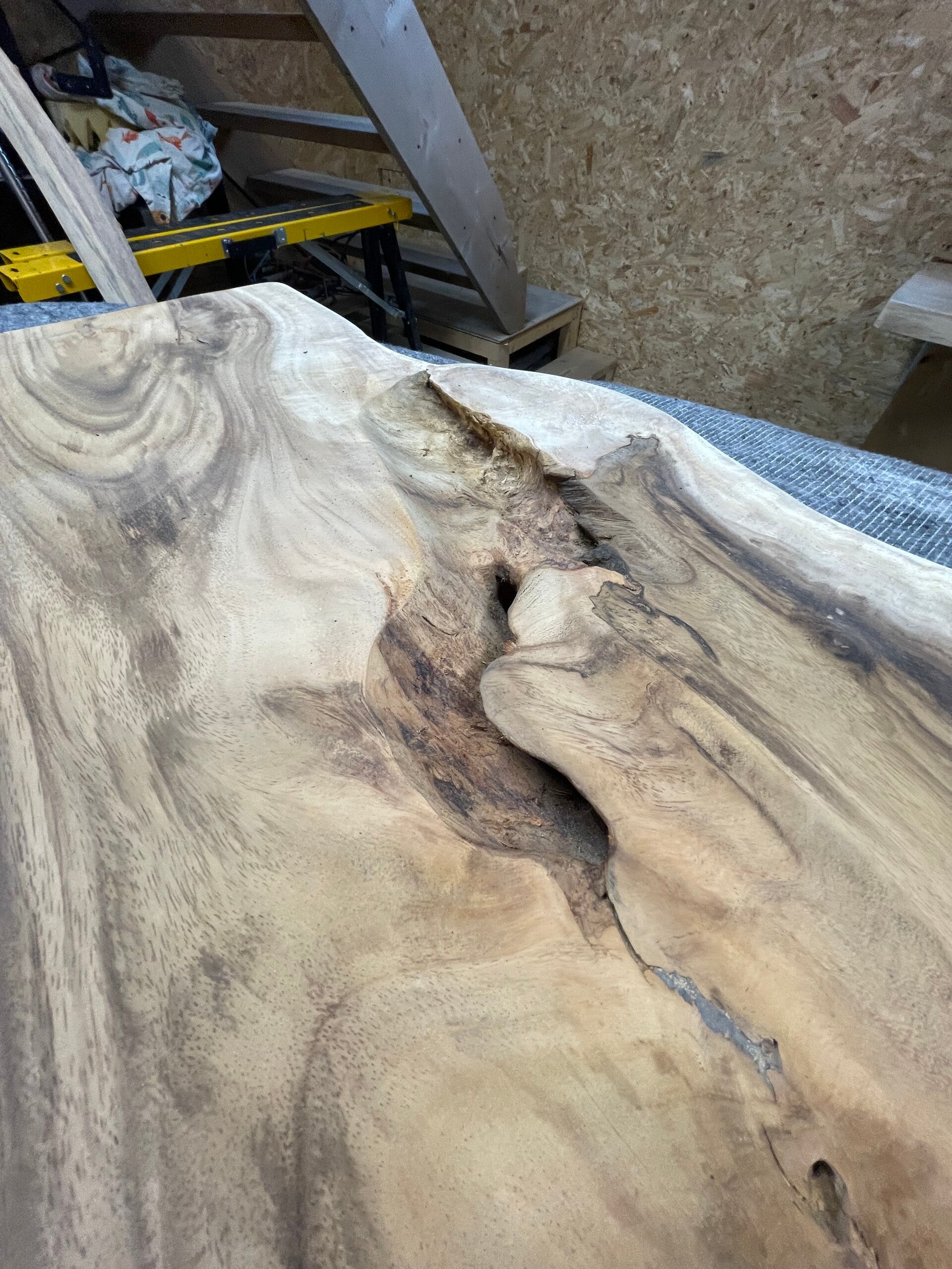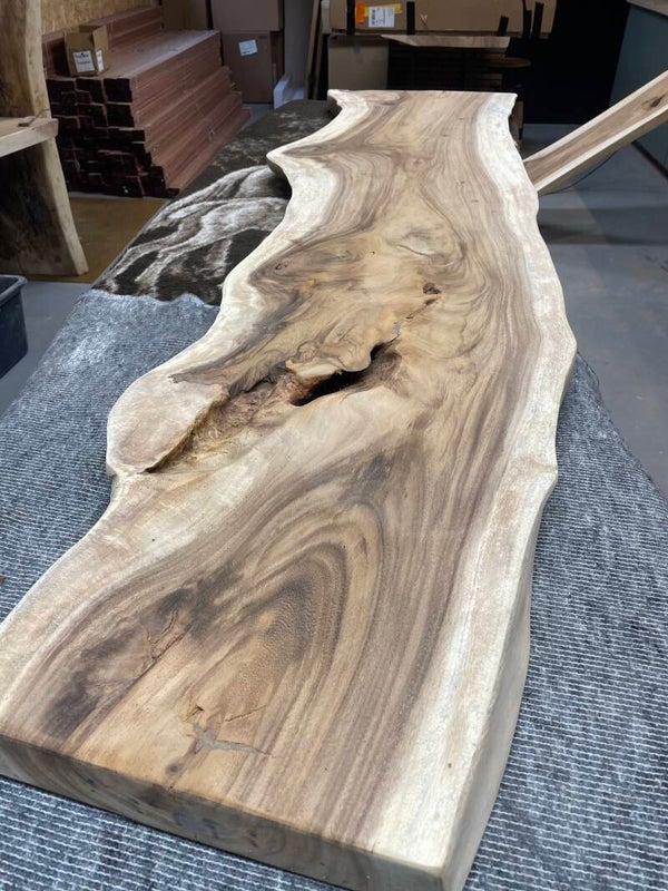 Deze boomstam plank is uit 1 stuk Suar hardhout is fijngeschuurd en spiegelglad, je kunt er zelf nog alle kanten mee op. Indien gewenst zagen we het blad voor je op maat.