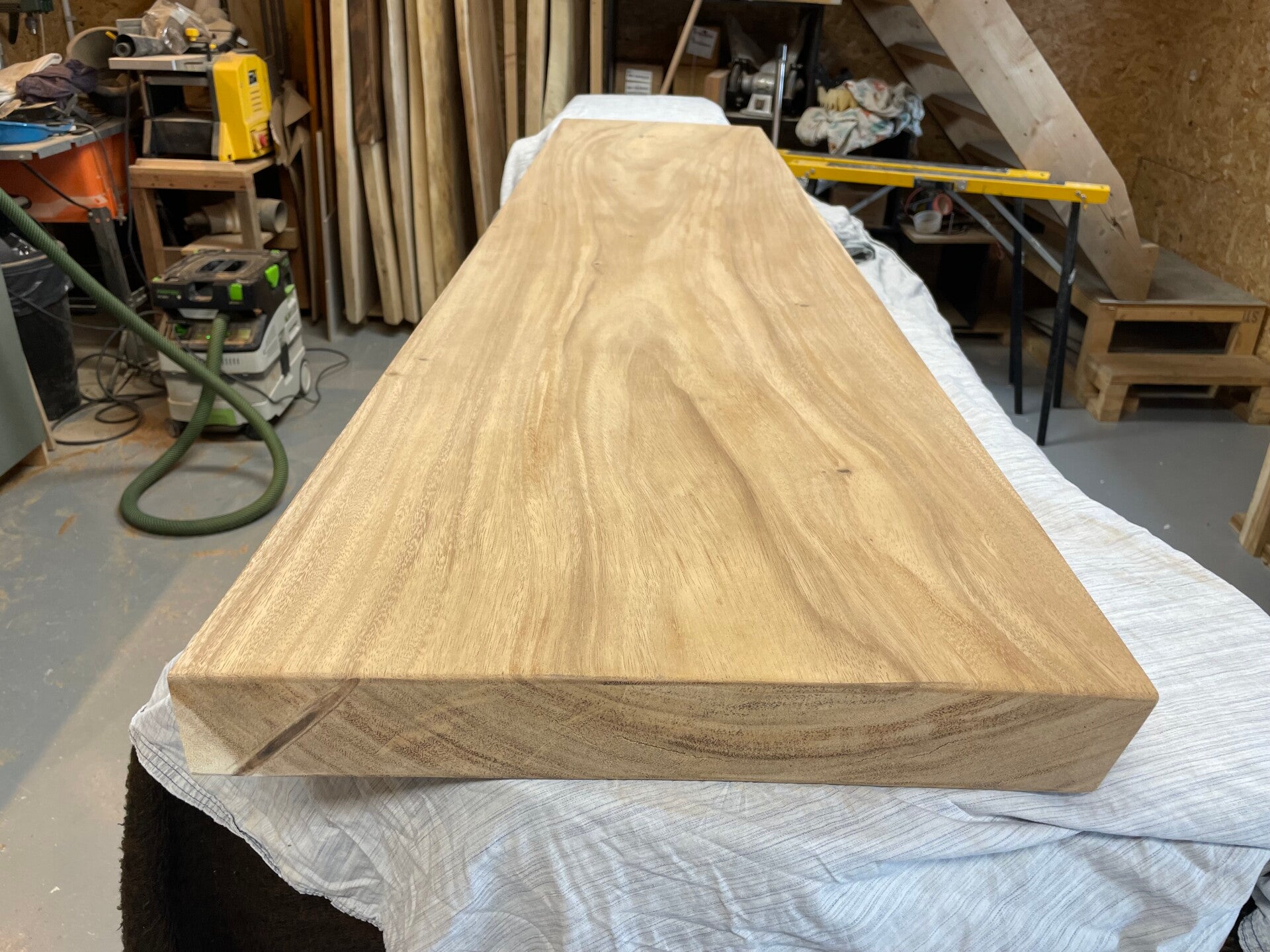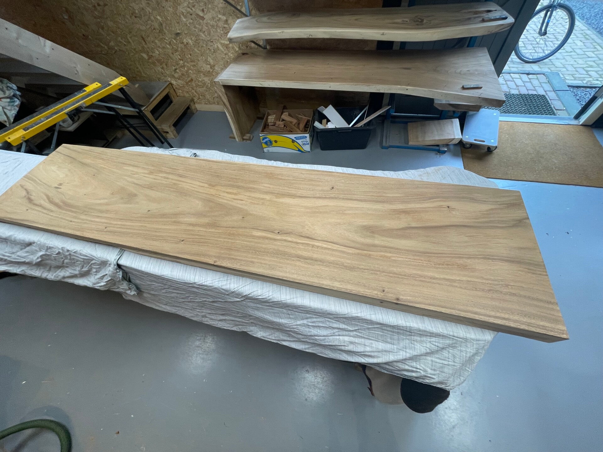 Het blad is fijngeschuurd en spiegelglad, je kunt er zelf nog alle kanten mee op.